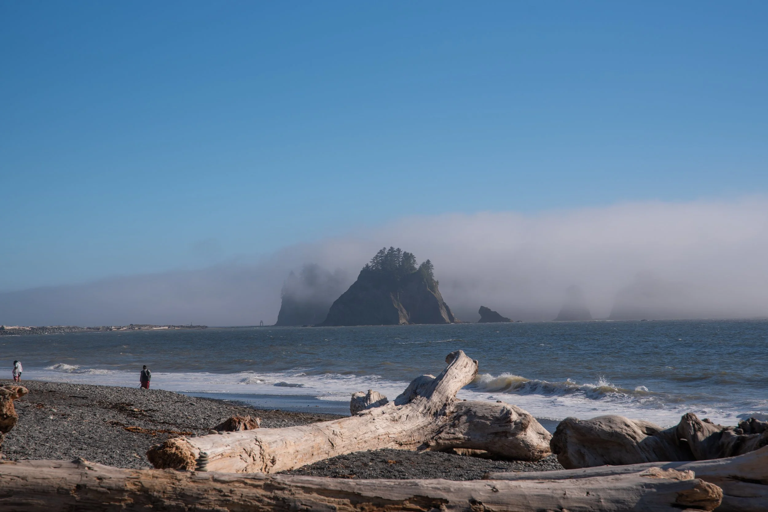 One minute the beach was clear (as pictured), and then the water and beach were completely obscured in fog. It was chilly and windy, yet very bright and sunny the day we went. The beach seemed less visited than Ruby Beach, but that could be based on the time and day we visited.