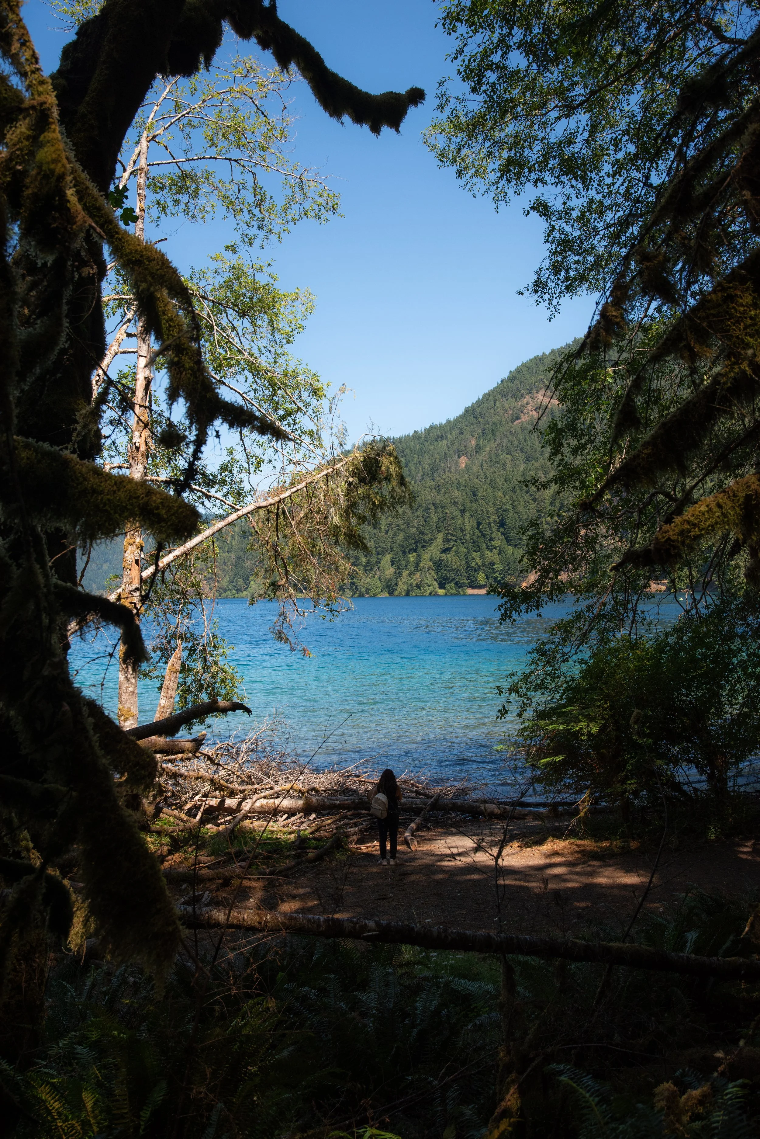 The trail to Marymere Falls begins near the shores of Lake Crescent. The area features walking paths, opportunities for boating, and spots where people can swim or relax by the water. It’s a peaceful place to soak up the sunshine and admire the lake’s striking blue and green tones.